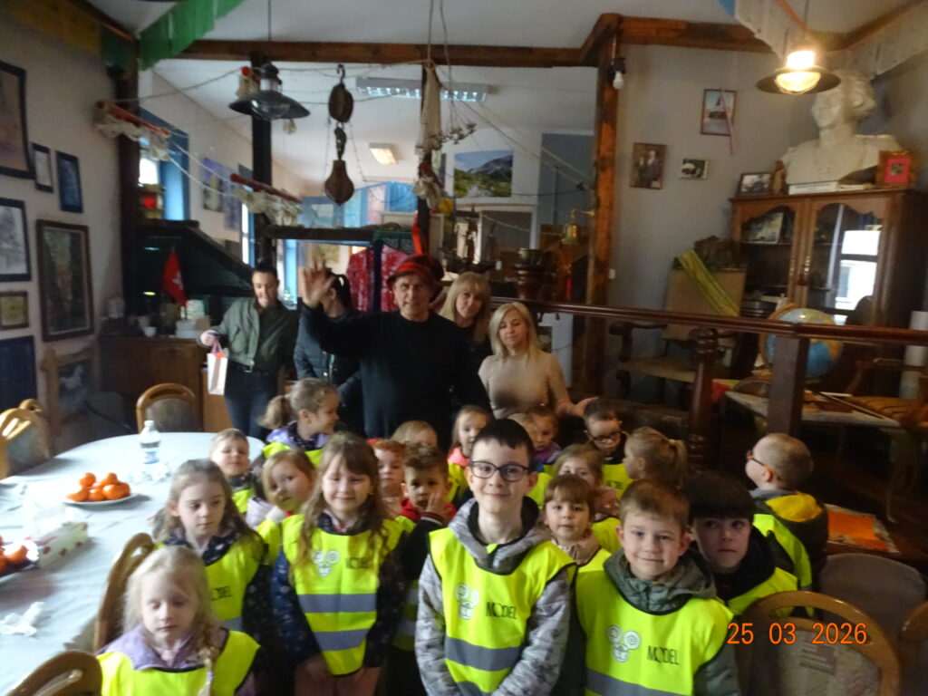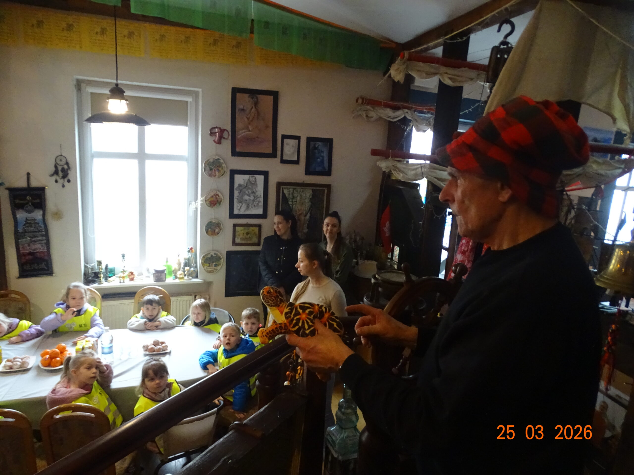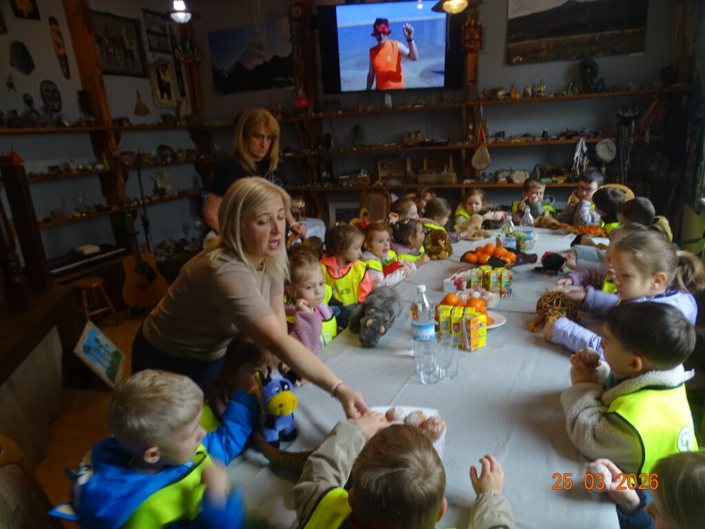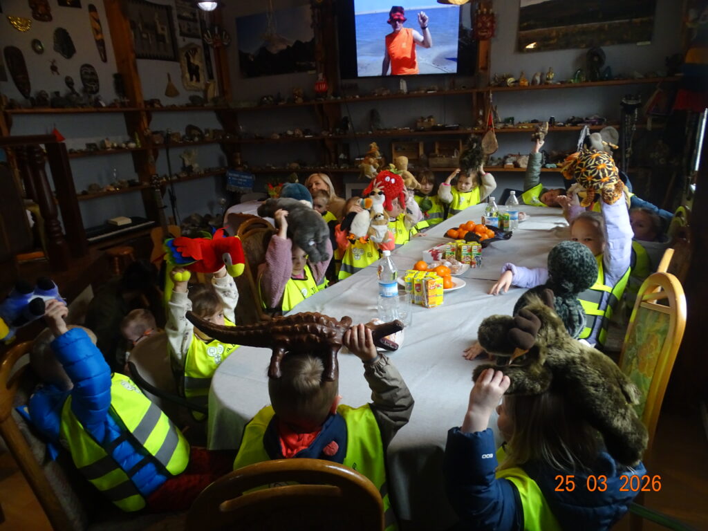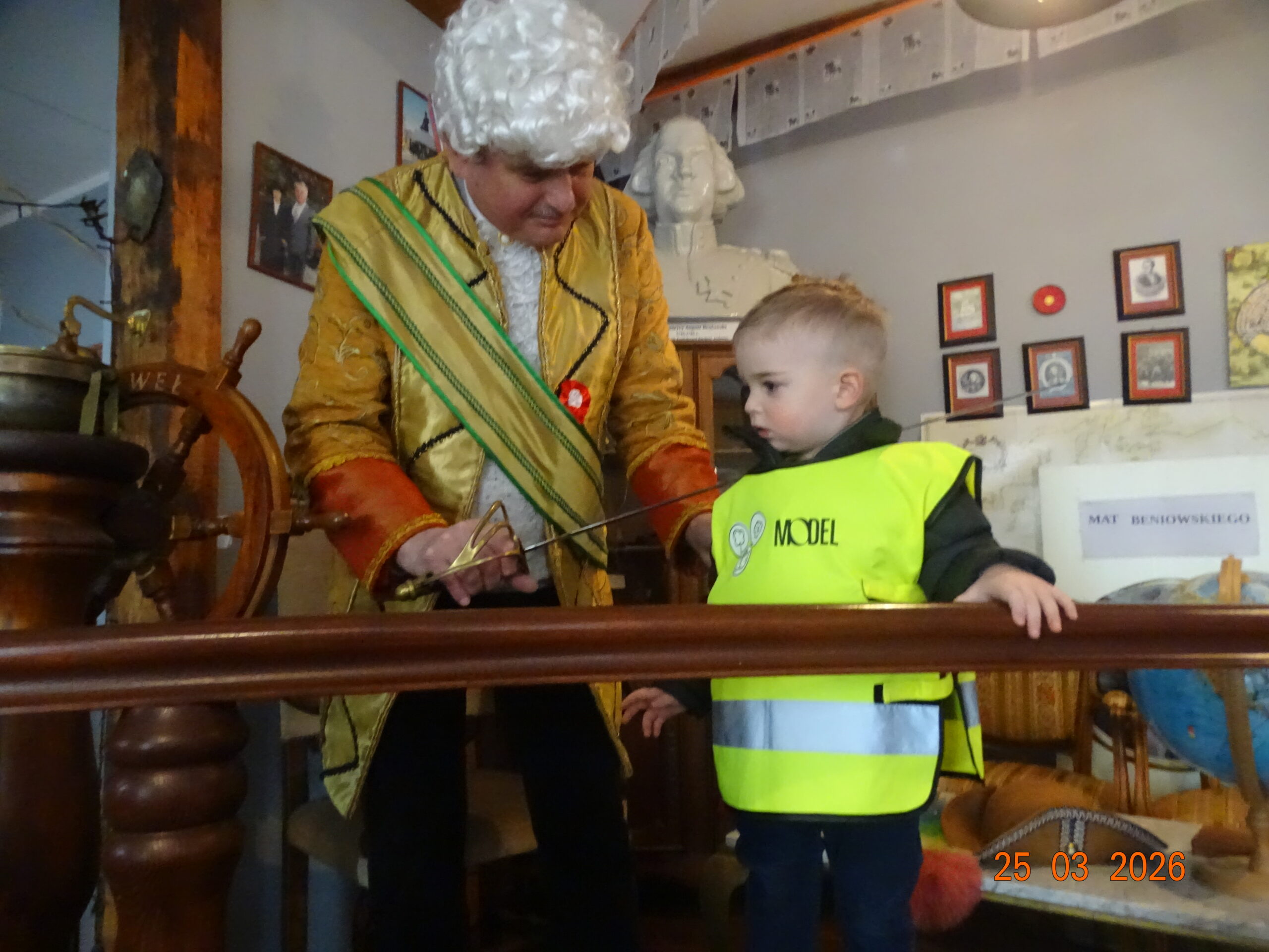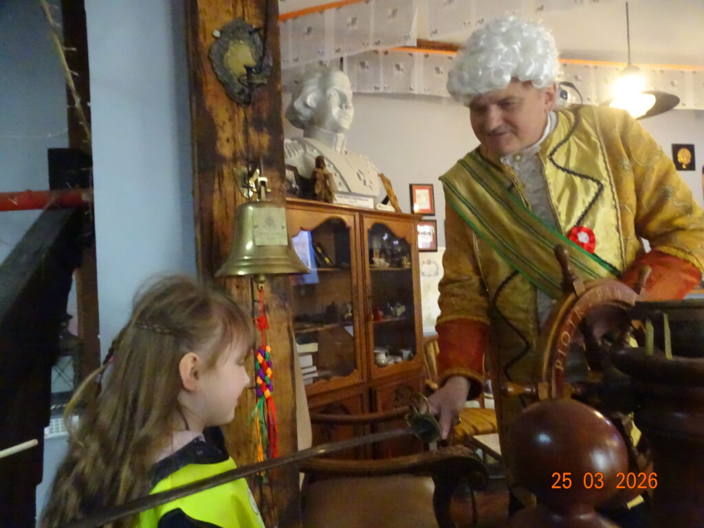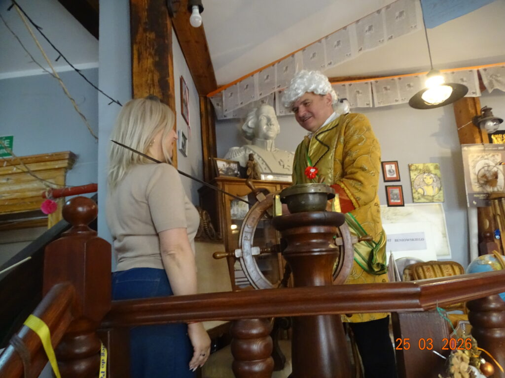 24 marca 2026r. sam Beniowski, w osobie Waldka, podejmował grupę dzieci z przedszkola przy Dworze Nadodrzańskim. Malownicza i liczna grupa przedszkolaków pod nazwą NIBYLANDIA na prawie dwie i pół godziny opanowała fundację. Beniowski mianował wszystkie dzieci na mostku kapitańskim na ,,majtków,, statku Piotr i Paweł. Każde dziecko mogło zakręcić kołem sterowym i wybić co najmniej pół szklanki na dzwonie okrętowym. Pani oczywiście została mianowana na ,,bosmana,,. Bo tylko ona wraz z koleżankami mogły zapanować nad tak liczną załogą. W rejs wyruszyliśmy z piosenką ,,Pożegnanie Liwerpolu,, ,którą dzieci wyklaskały z pomocą gitary pana Jurka. Beniowski nie krył za bardzo też faktu, że na statku są skrzynie pełne skarbów. Jedna z nich została otworta i wysypały się z niej skarby. Tyle, że każdy wydobyty eksponat musiał zostać odgadnięty i przytulony przez majtka. Skarbów starczyło dla wszystkich. Dzieci poznały też swoich trochę starszych rówieśników z Madagaskaru, wysłuchały bajki o baobabach i zobaczyły je na filmie. Przygotowane napoje i pączusie serkowe znikły w kilka chwil, bo każde dziecko czekało na wspólny koncert z wykorzystaniem przydzielonego instrumentu. To była niepowtarzalna, nieco dzika i piękna muzyka. Na koniec udało się wydobywać głos z trąbity, ustroić w naszyjnik jakucki i zrobić ostatnie wspólne zdjęcie. Dwie i pół godziny przeleciały tak szybko, że aż strach. Do widzenia NIBYLANDIO.