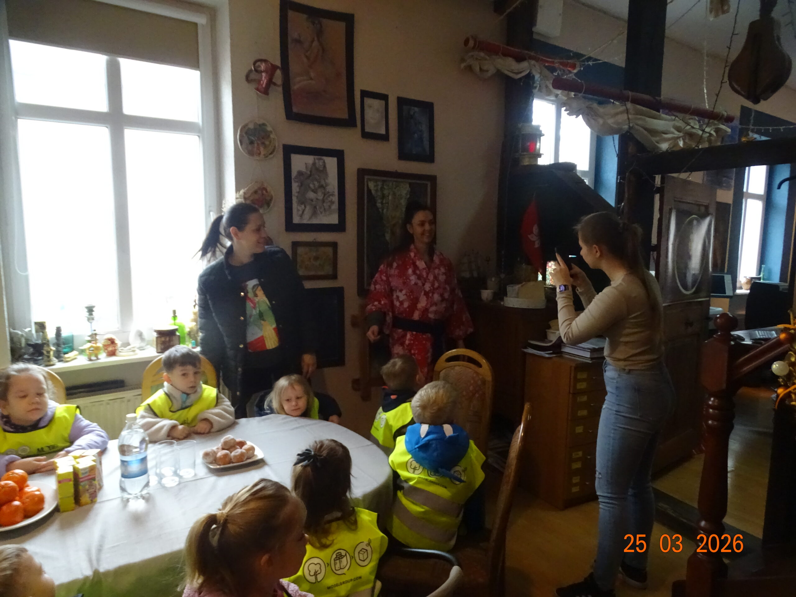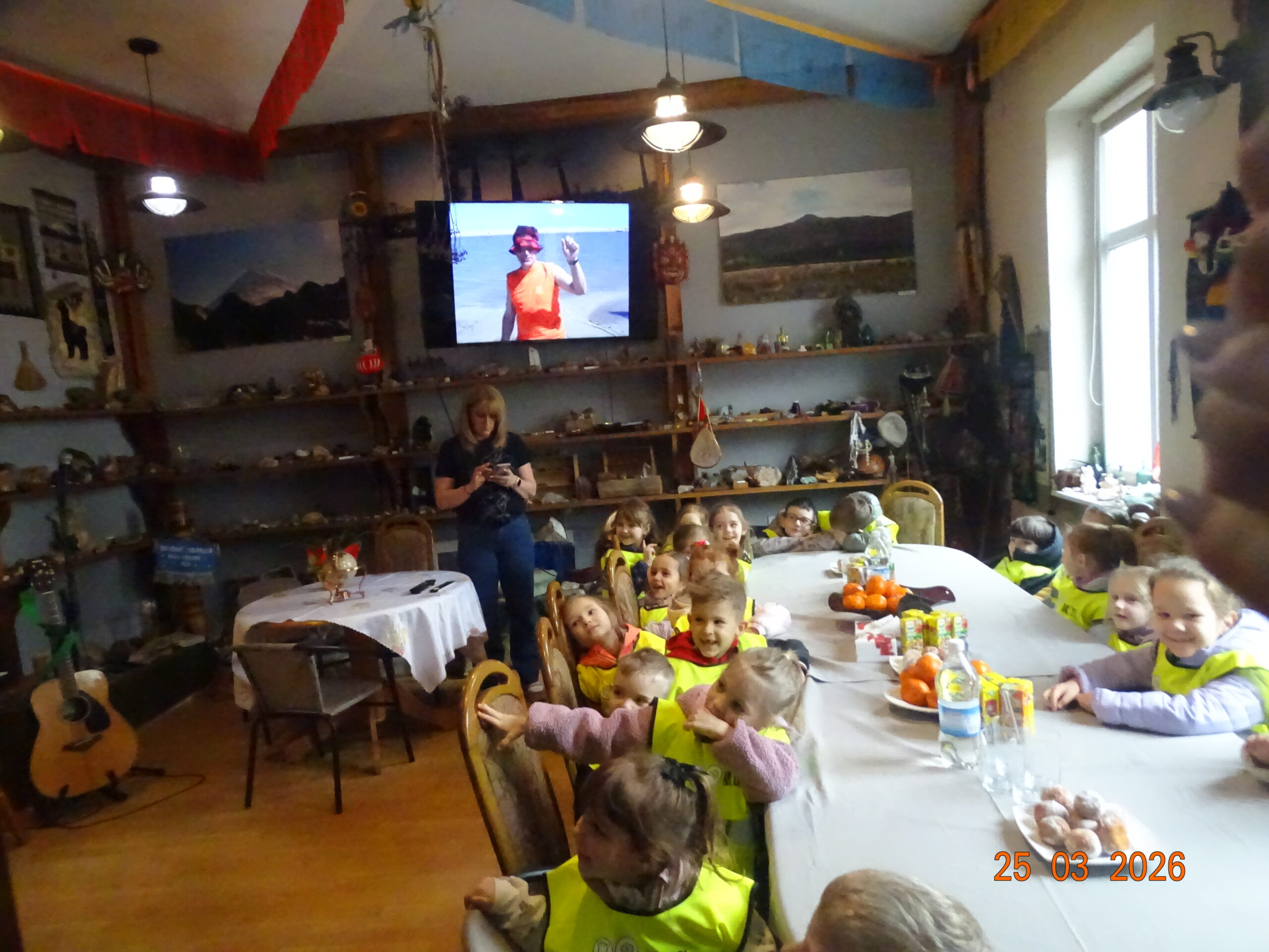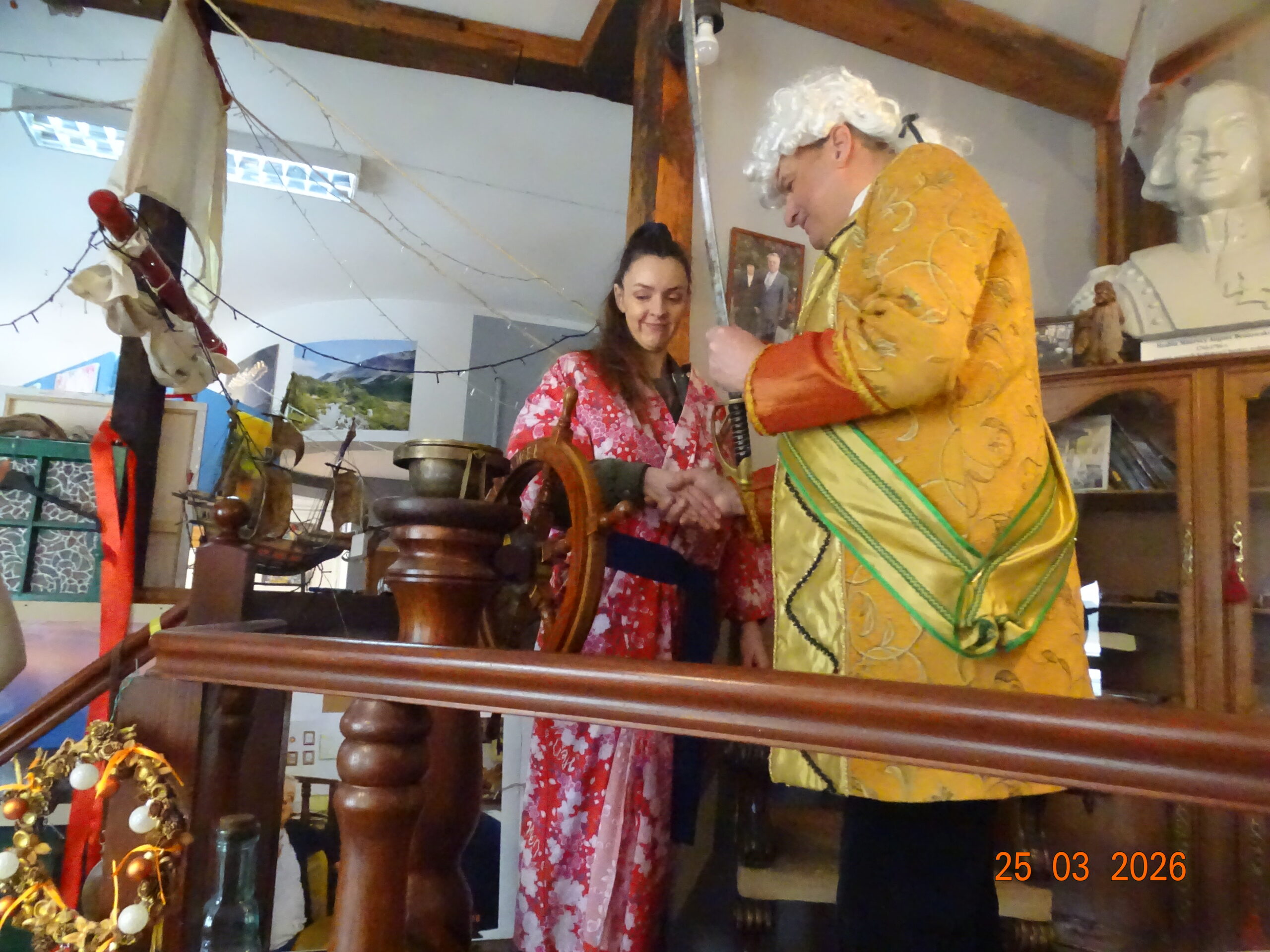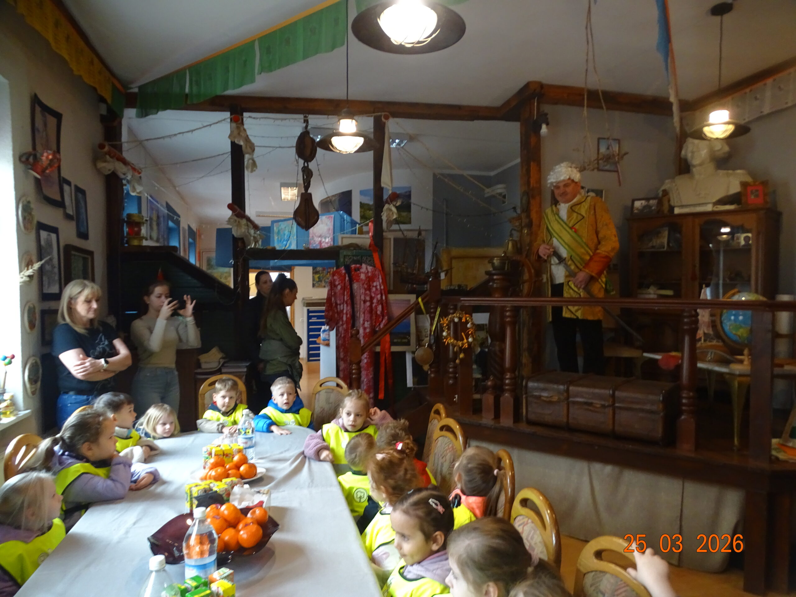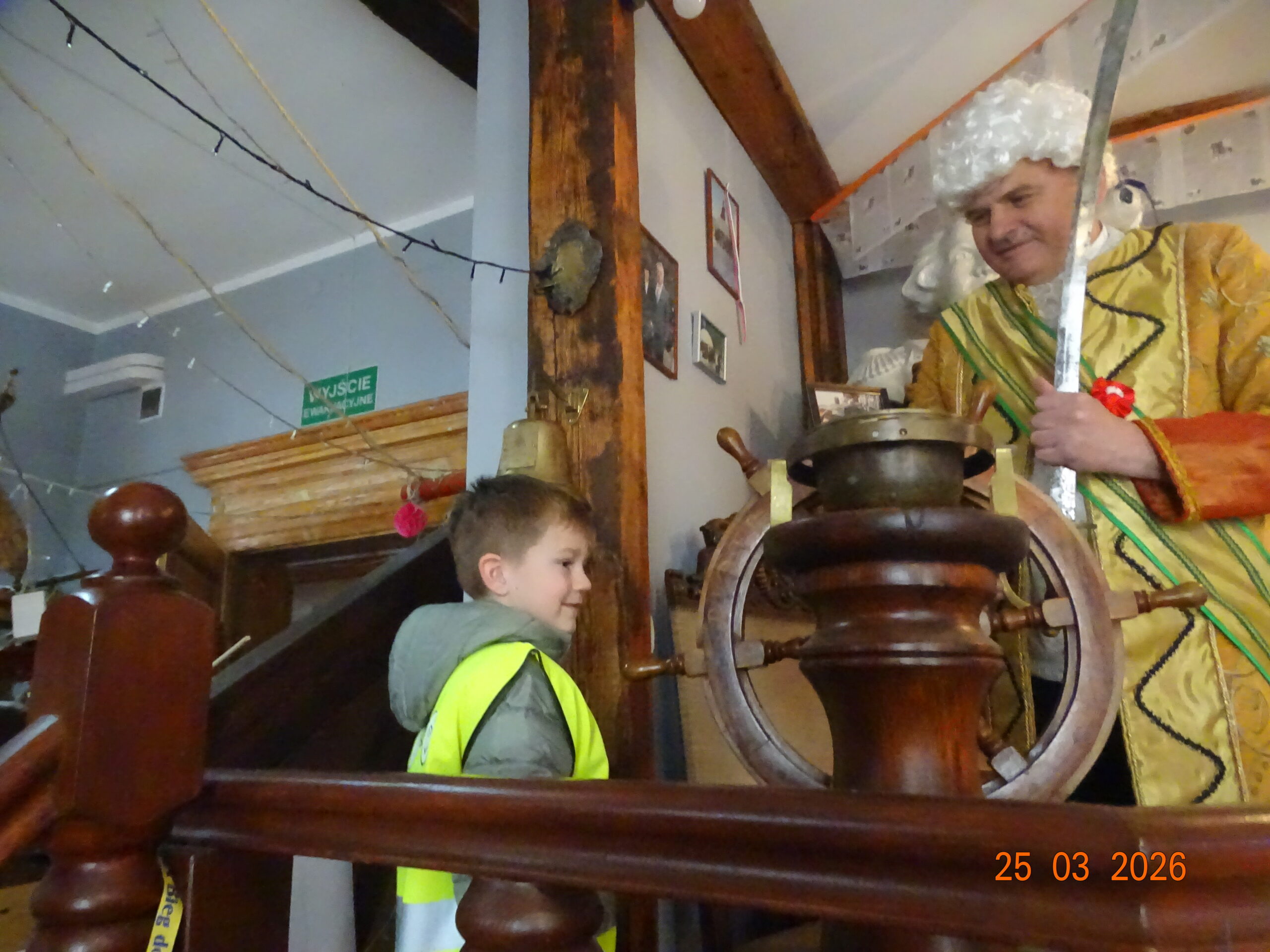 24 marca 2026r. sam Beniowski, w osobie Waldka, podejmował grupę dzieci z przedszkola przy Dworze Nadodrzańskim. Malownicza i liczna grupa przedszkolaków pod nazwą NIBYLANDIA na prawie dwie i pół godziny opanowała fundację. Beniowski mianował wszystkie dzieci na mostku kapitańskim na ,,majtków,, statku Piotr i Paweł. Każde dziecko mogło zakręcić kołem sterowym i wybić co najmniej pół szklanki na dzwonie okrętowym. Pani oczywiście została mianowana na ,,bosmana,,. Bo tylko ona wraz z koleżankami mogły zapanować nad tak liczną załogą. W rejs wyruszyliśmy z piosenką ,,Pożegnanie Liwerpolu,, ,którą dzieci wyklaskały z pomocą gitary pana Jurka. Beniowski nie krył za bardzo też faktu, że na statku są skrzynie pełne skarbów. Jedna z nich została otworta i wysypały się z niej skarby. Tyle, że każdy wydobyty eksponat musiał zostać odgadnięty i przytulony przez majtka. Skarbów starczyło dla wszystkich. Dzieci poznały też swoich trochę starszych rówieśników z Madagaskaru, wysłuchały bajki o baobabach i zobaczyły je na filmie. Przygotowane napoje i pączusie serkowe znikły w kilka chwil, bo każde dziecko czekało na wspólny koncert z wykorzystaniem przydzielonego instrumentu. To była niepowtarzalna, nieco dzika i piękna muzyka. Na koniec udało się wydobywać głos z trąbity, ustroić w naszyjnik jakucki i zrobić ostatnie wspólne zdjęcie. Dwie i pół godziny przeleciały tak szybko, że aż strach. Do widzenia NIBYLANDIO.